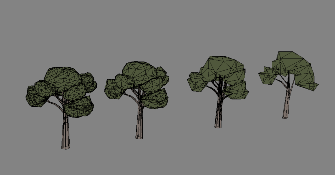 Our pine trees are one of the most prevalent assets in the game. It’s also quite tall so should be visible from a distance — therefore it got 4 LODs.