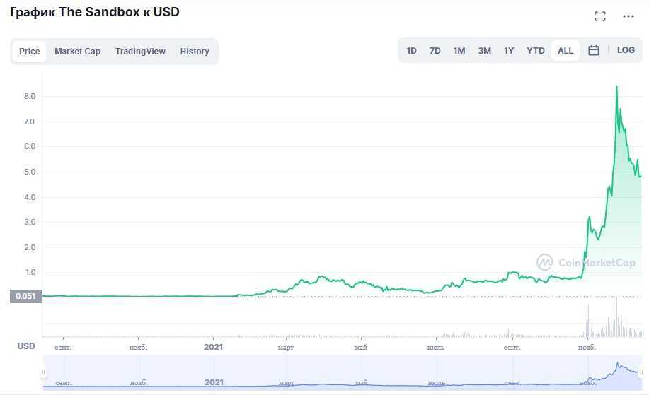 Ожидается, что эти особенности проекта спровоцируют стремительный рост цен. Но нужно учитывать, что на данном этапе токен SAND достаточно сильно пропамплен, и есть большая вероятность его падения.