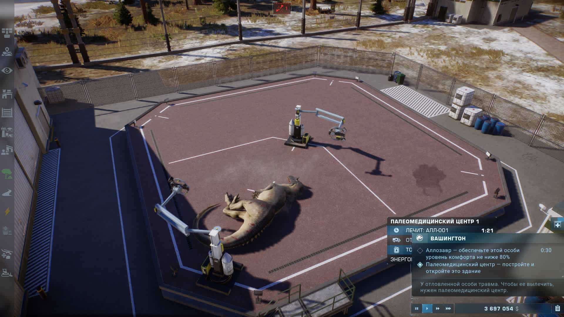 В игре очень много действий и событий, за которыми нужно следить. И с учетом такой растянутости многих механик, процесс управления парком превращается в каторгу. Если на старте и в середине прохождения, когда в парке пяток динозавров и парочка загонов, еще справляешься, то развив свой «бизнес», превращаешься в белку в колесе.