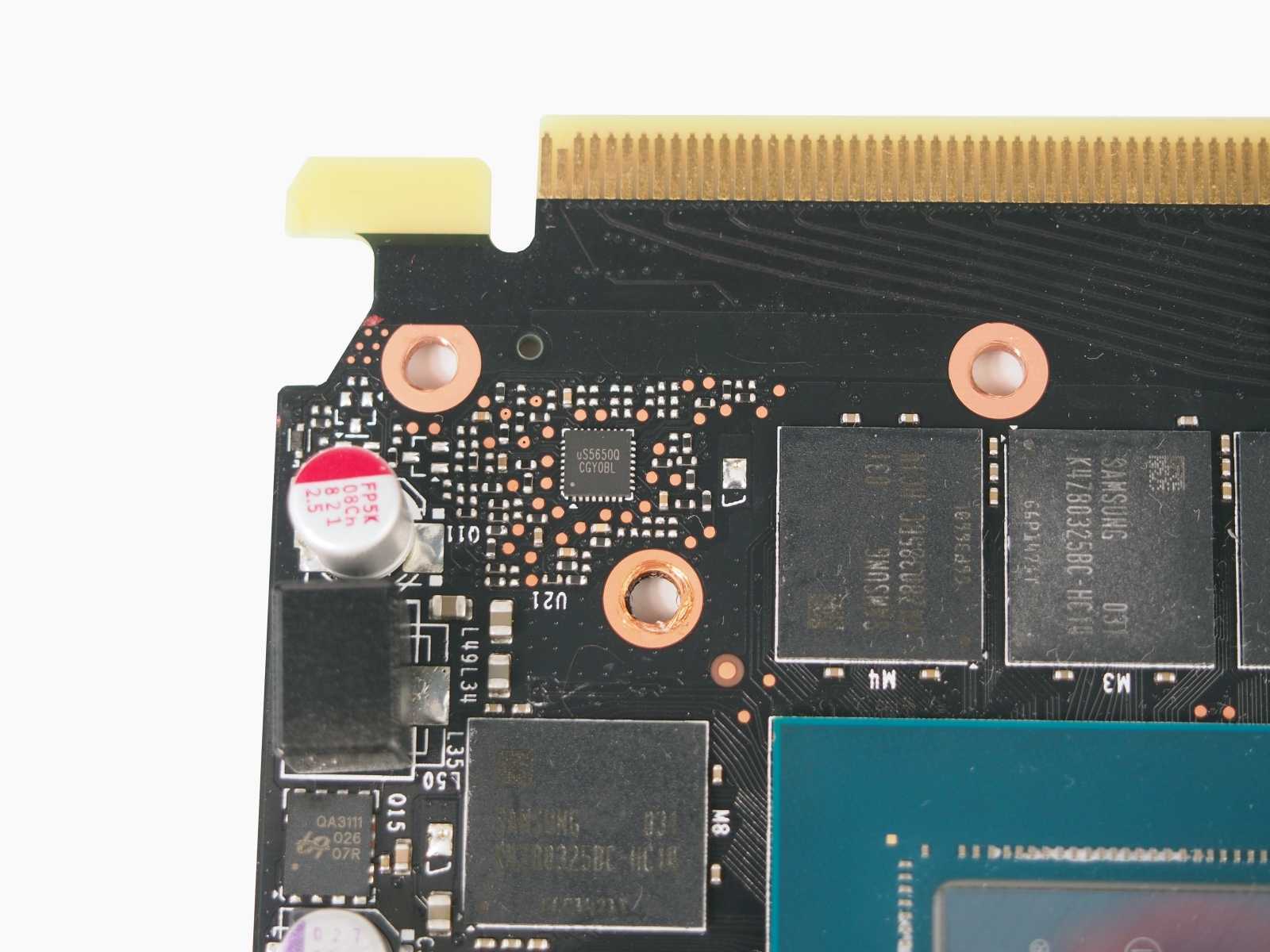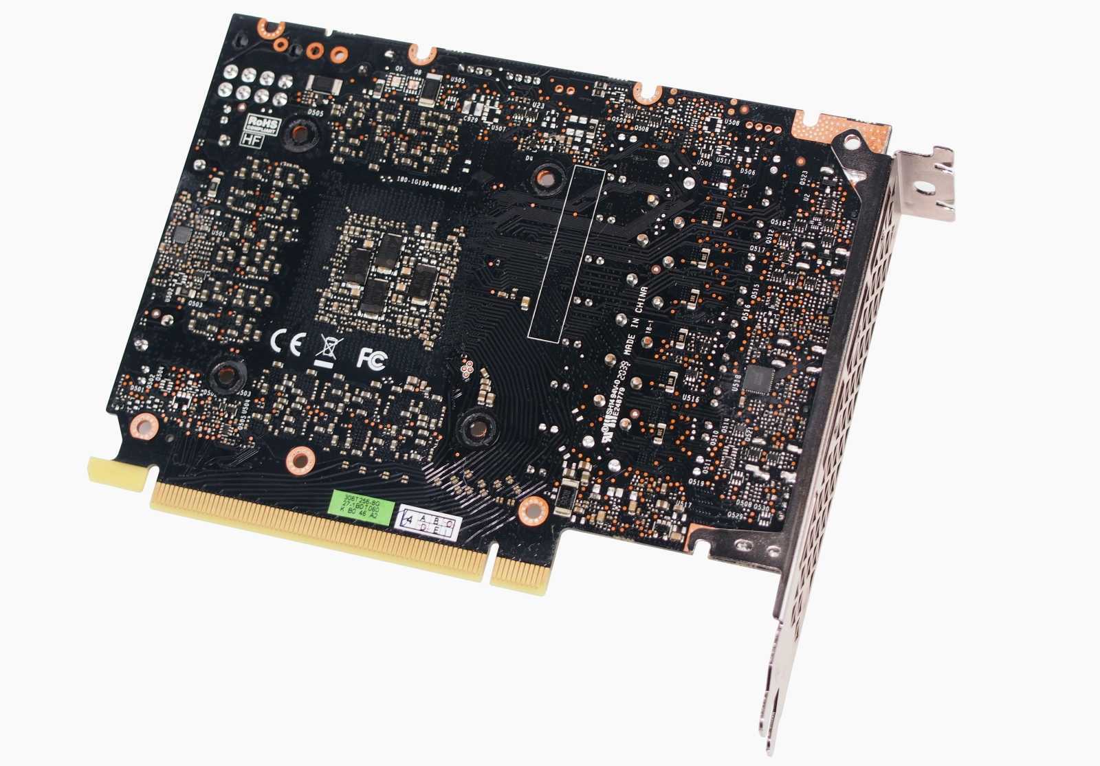 Немалое количество элементной базы вынесено и на тыльную сторону печатной платы. Сюда переехала часть контроллеров системы питания и конденсаторы для графического процессора видеокарты.