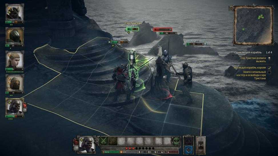 Очки действия (зелёные можно использовать на перемещение и навыки, а жёлтые — только на движение); укрытия; атаки с фланга и в спину; режим наблюдения (тут называется бдительностью); расстановка бойцов перед некоторыми важными схватками; формации; важность выбора позиции; необходимость выманивать и выжидать; классовые навыки, вроде удара по нескольким противникам, установки ловушек или поджигающего выстрела, — перед нами очень даже компетентная тактика. Зачастую сражения приходится переигрывать несколько раз, чтобы никто из рыцарей не погиб