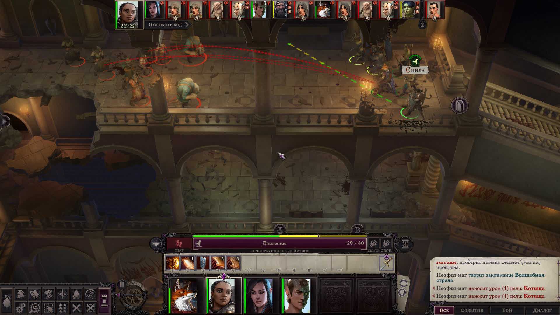 Здесь два режима боя — в реальном времени и пошаговый. Какой выбирать — зависит от вас. В реальном времени персонажи бегают строем и сражаются одновременно, почти автоматически — главное, прожимать паузу и вовремя жать на заклинания и указывать приоритетные цели. В пошаговом режиме появляется очередность ходов и полный контроль над персонажами.