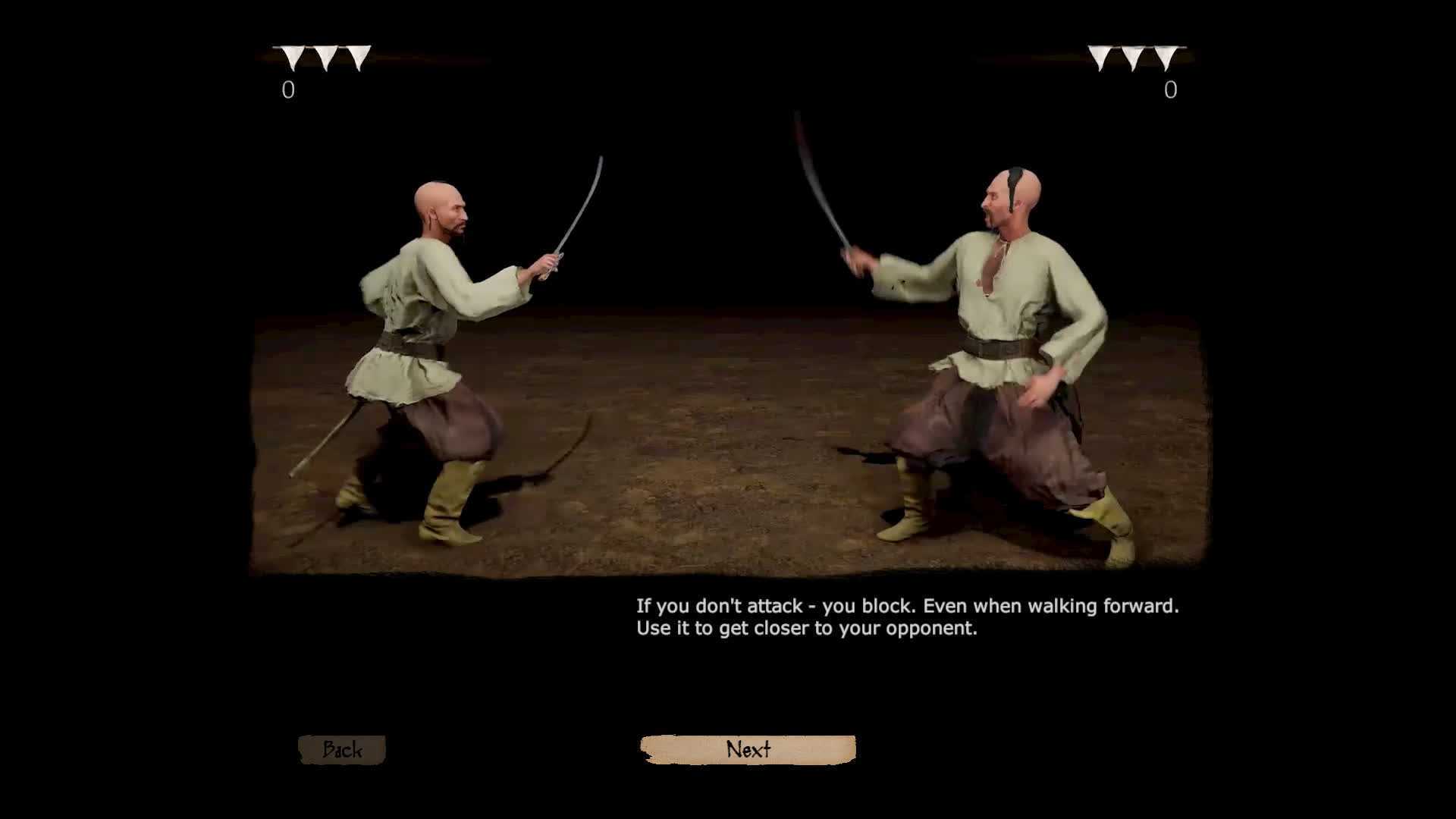 Обучение состоит из двух этапов — объяснения основ геймплея и советов. Управлять персонажами во время обучения вы не сможете. Информация подается в виде текста и заскриптованных поединков на фоне, демонстрирующих тот или иной игровой аспект. Советую изучить все, что показано в обучении, иначе вообще ничего не поймете и будете ощущать себя Инджрихом из Kingdom Come: Deliverance, которому впервые в жизни вручили клинок.