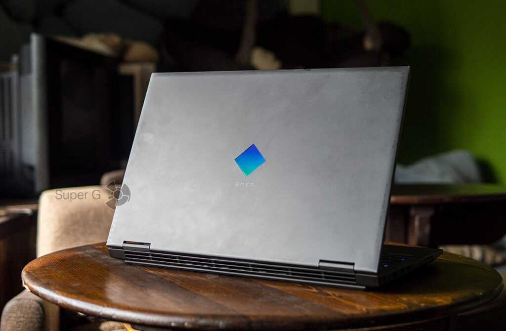 На фоне сей фактуры тонко красуется хромированная надпись «Hewlett-Packard». Днище ноутбука OMEN тоже является само по себе визуально интересным — половина её состоит из крошечных треугольников аналогично крышке, тогда как другая половина выполнена с использованием плоской решетки с вырезами той же геометрической формы. То есть в первом случае это текстура материала, а во втором — решетка в том же дизайне, которая выполняет ещё и важную роль для системы охлаждения: пропускает воздух. Это необычно и свежо, поэтому Omen можно будет узнать из «толпы». Также устойчивость ноутбуку придают резиновые ножки, расположенные практически неразрывно по всему канту нижней панели.