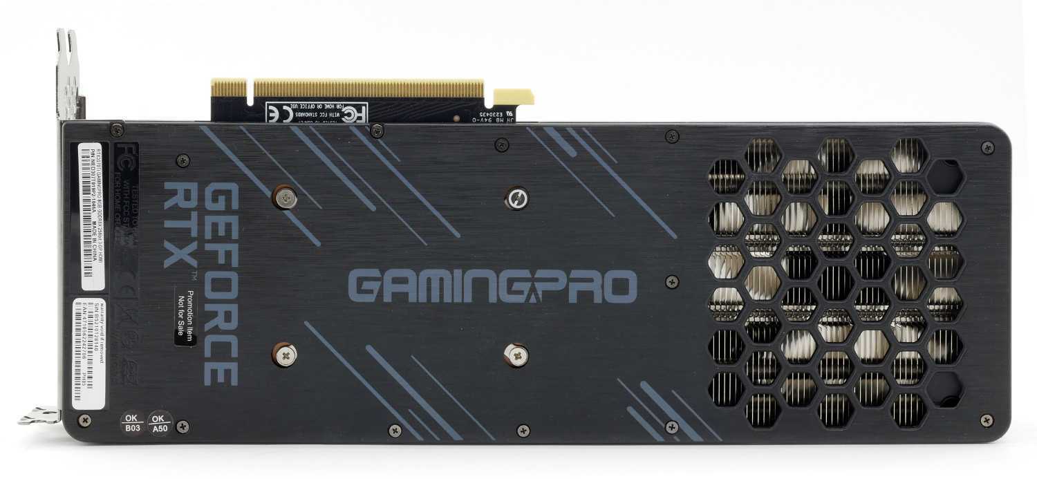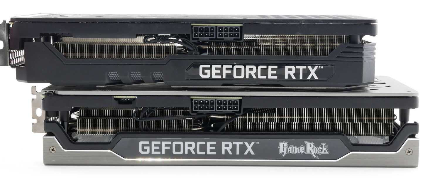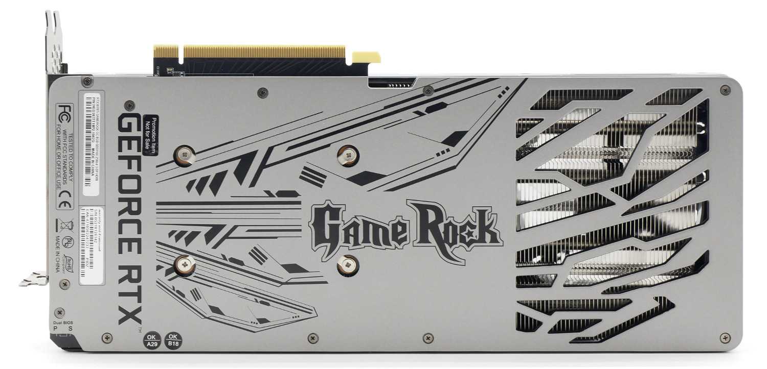 В свою очередь видеокарта Palit GeForce RTX 3070 Ti GameRock оснащена металлической пластиной, более солидной в плане надежности и охлаждения.