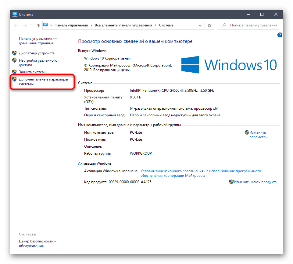 3. Появится новое окно “Панель управления”, в котором необходимо перейти в меню “Дополнительные параметры системы”.