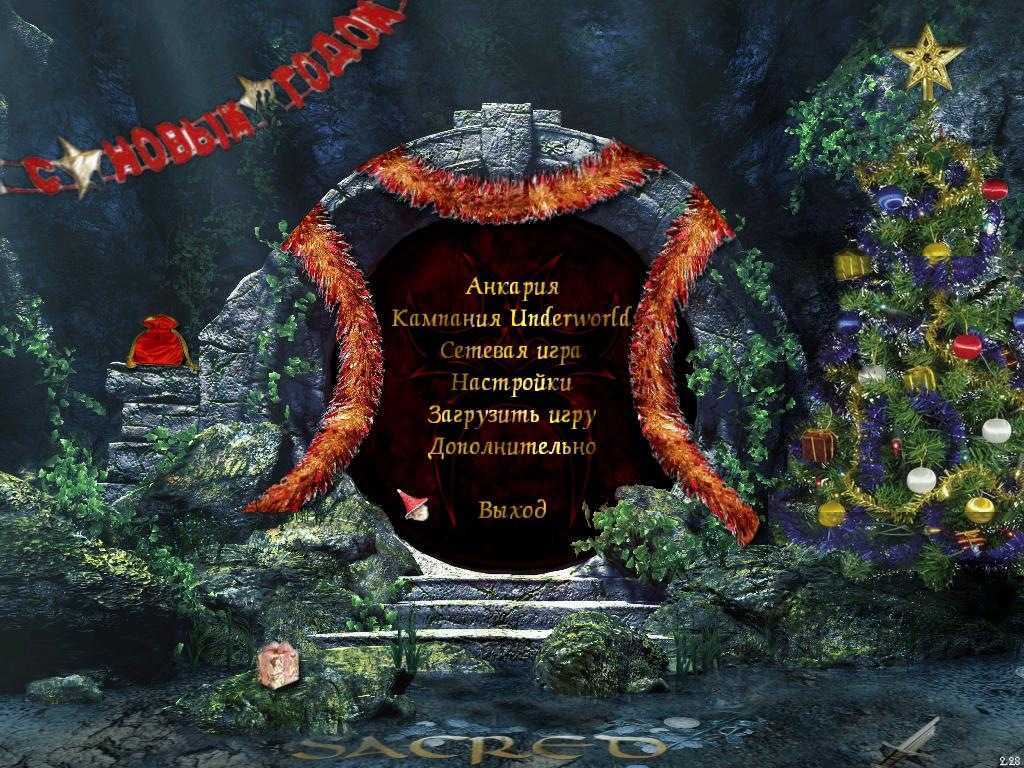 А я вот сделала новогоднее убранство для меню. До сих пор стыдно, что это творение лежит в группе Sacred Wiki (оцените курсор-деда мороза)