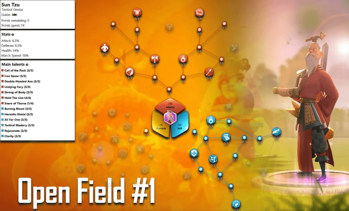 Книга вечности (экспертный, пассивный). Наносит не более чем 5 целям в секторе перед собой прямой урон (множитель урона 800), а на следующий ход дополнительный урон (множитель урона 200). Сунь-Цзы получает еще по 50 ед. ярости за каждую цель, попавшую под действие навыка.