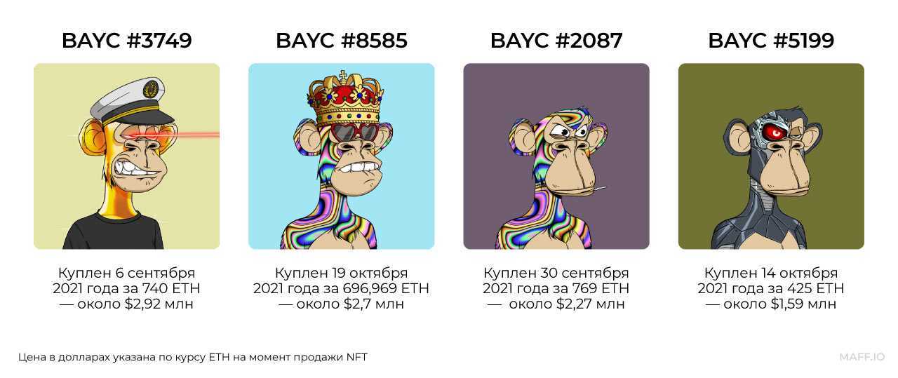 Самые дорогие NFT из коллекции Bored Ape Yacht Club