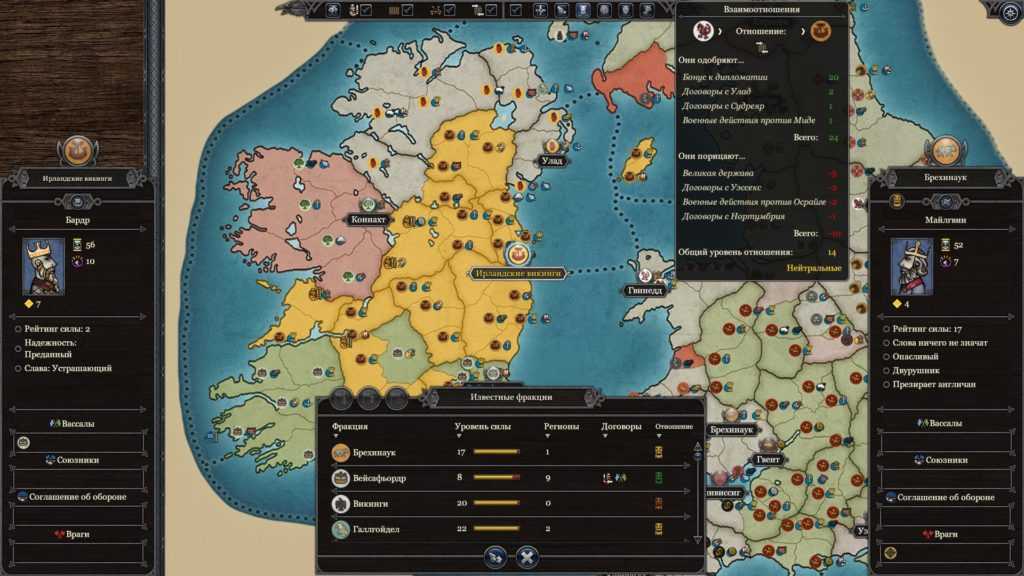 Еще в Total War Saga: Thrones of Britannia есьть лаконичная система развития персонажей. Каждого можно «прокачать» до 10 ранга. При этом при каждом повышении он может улучшить одного из участников своей свиты. Например, для небольших рейдерских отрядов отлично подойдет интендант, который увеличивает количество очков перемещения по карте.
