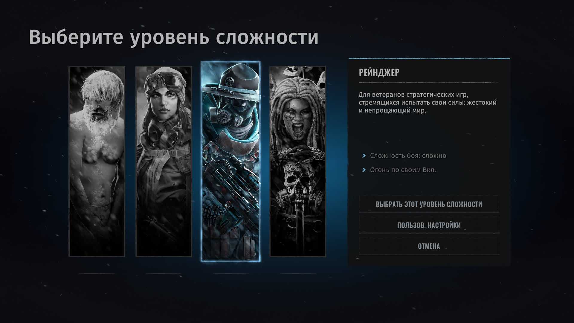 Уровни сложности можно менять «на лету», они влияют на количество доступных расходников, входящий урон, огонь по своим и ряд других параметров.