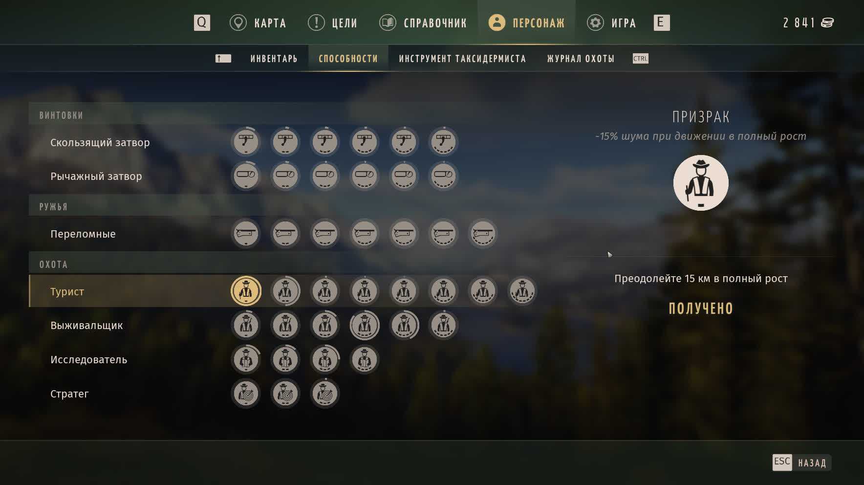 Еще здесь можно рассказать о перках. Они прокачиваются в зависимости от твоих действий в открытом мире. Много бегаешь — будешь выносливее. Долго крадешься — станешь менее заметным для живности. Хорошо стреляешь — твоя меткость повысится.