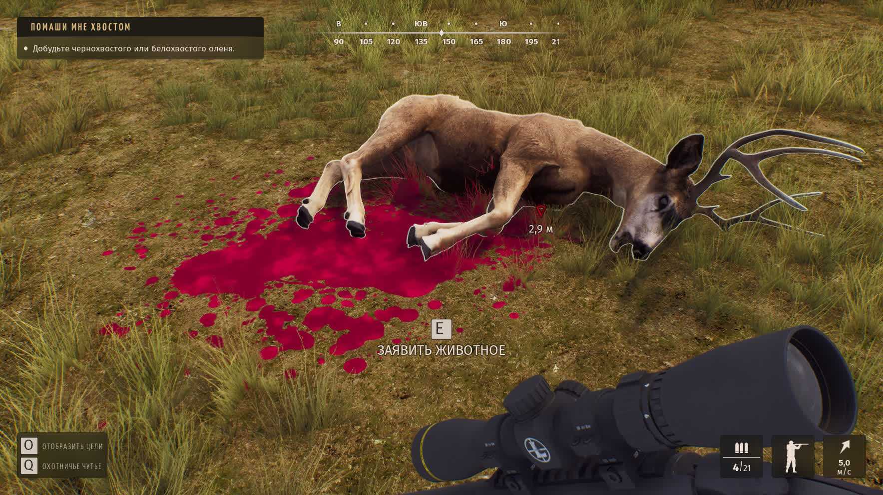 Бычок будет идти долго, осторожно (он в курсе, что за его труп деньги платят) и придет последним. В любом случае, приближаясь, все они могут подать голос – тогда смотрите по HunterMate, откуда его ждать