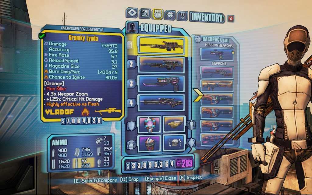 Классмод: Legendary Sniper (легендарный снайпер) – плюсует отличные умения. Для боссов стоит использовать Chaotic Evil Rogue (хаотичный злой разбойник), который прибавляет нам скорострельность и криты.