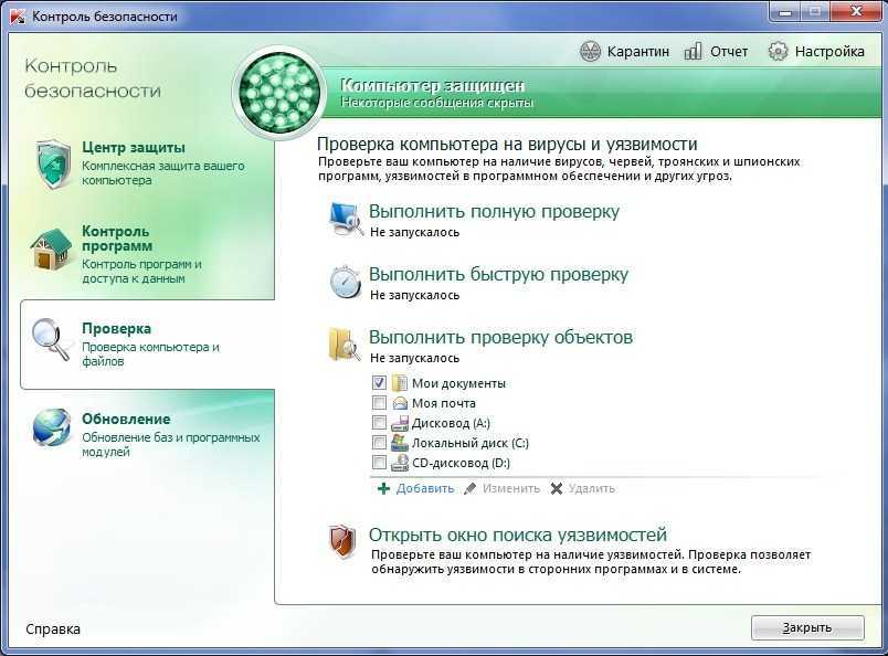 Проверка компьютера на вирусы и уязвимости – одна из важнейших задач обеспечения безопасности компьютера. В результате проверки на вирусы выявляется распространение вредоносного кода, по каким-либо причинам не обнаруженного защитой в режиме реально времени. Поиск уязвимостей устанавливает наличие в программном обеспечении уязвимостей, которые могут быть использованы злоумышленниками для распространения вредоносных объектов и доступа к персональным данным.