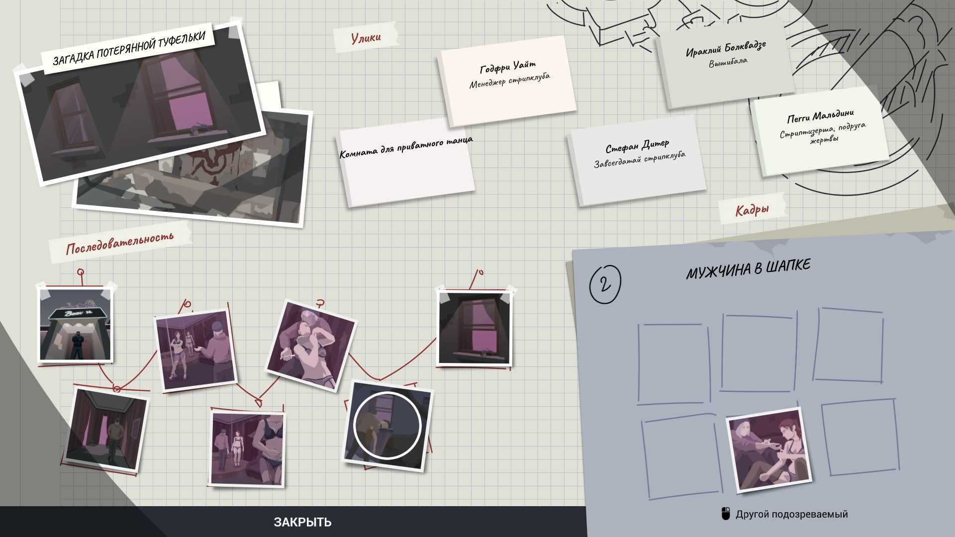 Улики: комната для приватного танца, Гофри Уайт, Стефан Дитер, Ираклий Болквадзе, Пегги Мальдини.