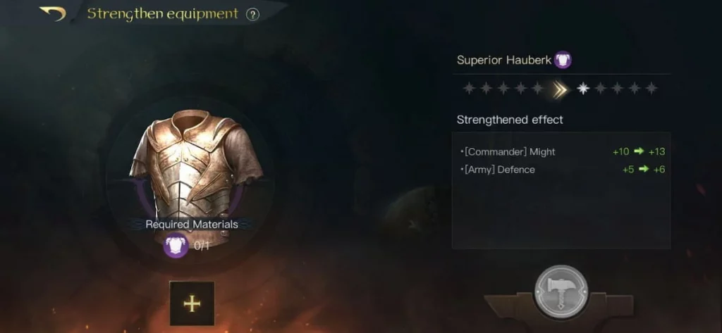 Когда часть усиленного снаряжения используется в качестве материала для улучшения другого снаряжения, оно будет считаться дубликатом одного и того же предмета в зависимости от того, сколько раз оно было усилено.