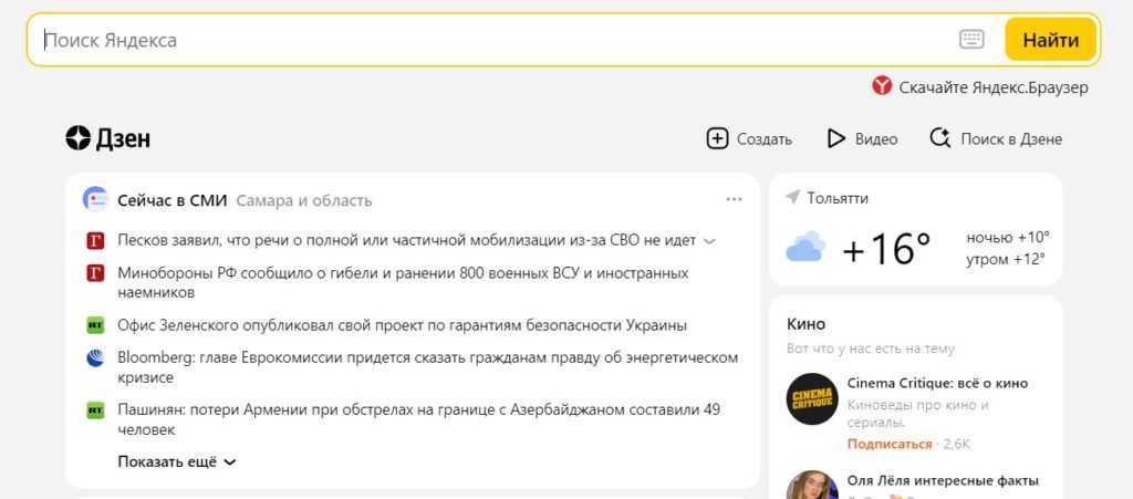 Скриншот: Яндекс перекидывает на Dzen