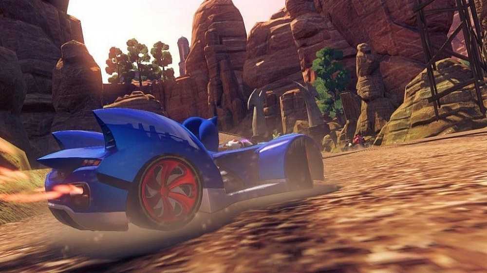 Пример игрового процесса в Sonic & All-Stars Racing Transformed . Во время гонки автомобили могут трансформироваться в различные транспортные средства, чтобы получить доступ к недоступным ранее дорогам и пересечь определенную местность.