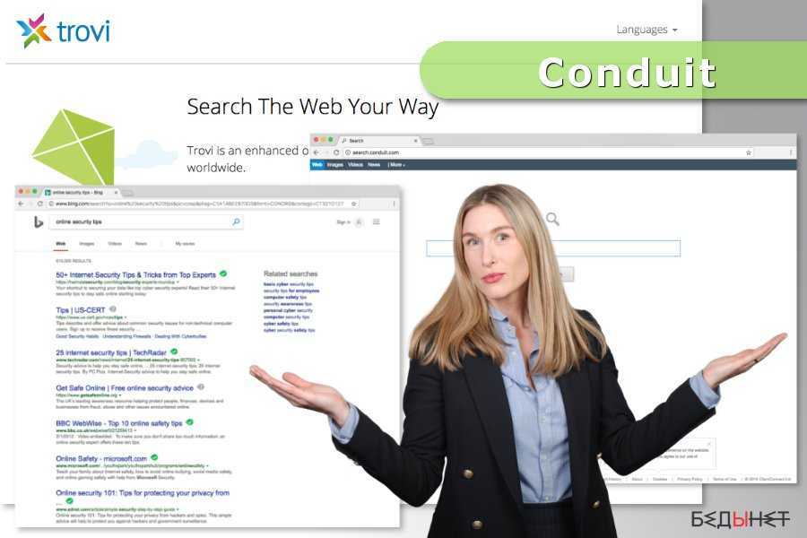 Если Conduit уже заменил Вашу стартовую страницу и поисковую систему по умолчанию на Search.conduit.com, Storage.conduit.com, Trovi.com или Trovigo.com, Вам следует не терять времени и проверить компьютер с надежной антишпионской программой.