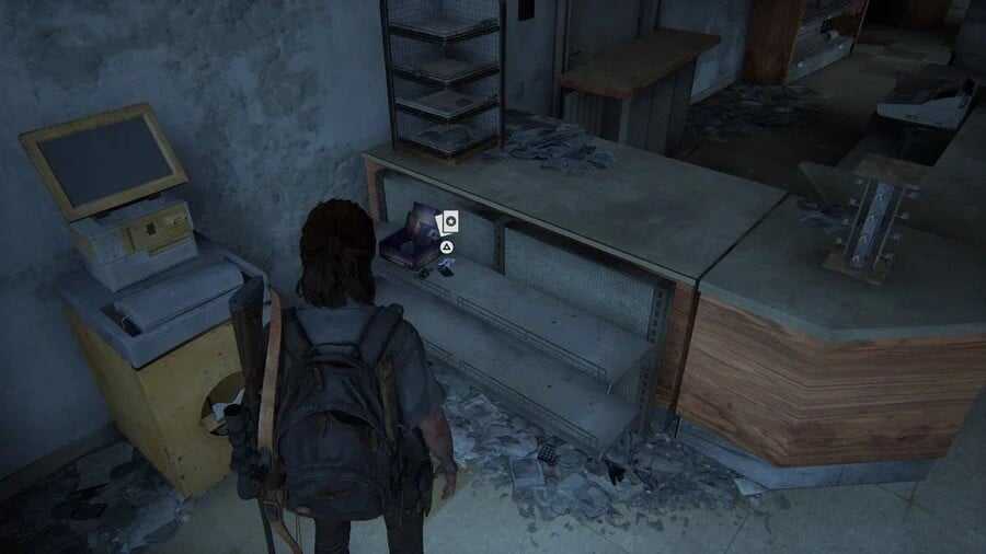 Напротив заправки будут стоять книжный магазинчик и небольшая кофейня. Обучающее руководство по скрытности, «Last Round: The Survivalist Magazine», будет находиться в книжном, рядом с печатной машинкой, стоящей у фронтального окна. Если же вы предзаказывали The Last of Us 2, в этом месте у вас ничего не будет лежать.