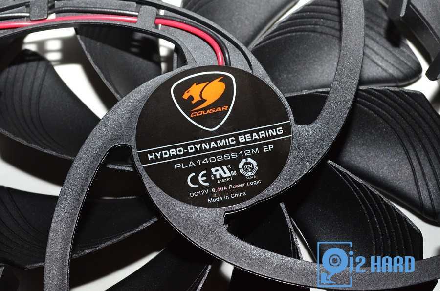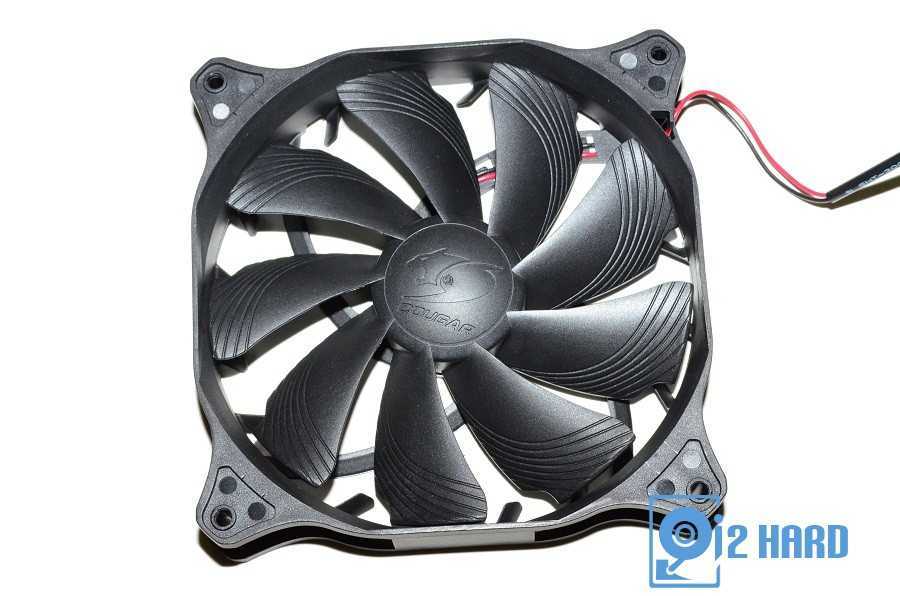 За охлаждение компонентов БП отвечает 140 мм вентилятор PLA14025S12M, тип подшипника – гидродинамический. Управление скоростью вращения осуществляется с помощью термодатчика, паспортная скорость вращения вентилятора составляет 1500 об/мин. Для улучшения воздушного потока лопасти снабжены необычными канавками. В состоянии покоя вентилятора не слышно вовсе, но при полной нагрузке шум становится различим, но дискомфорта при этом не возникает.