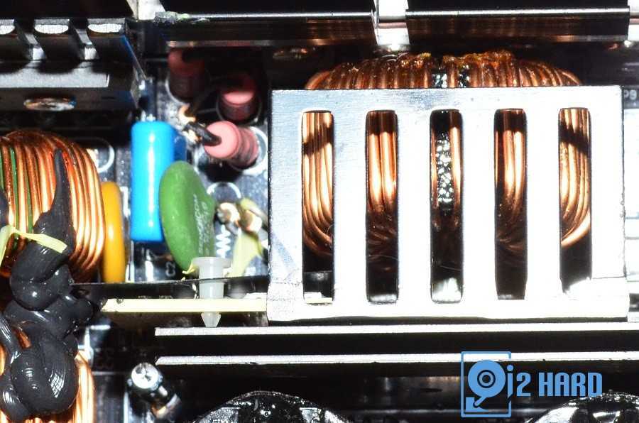 Далее идет корректор коэффициента мощности. Последнее время они встречаются все чаще в компьютерных источниках питания, что позволяет включать больше компьютеров без сдвига фазы между током и напряжением, что может снизить стоимость электроэнергии и разгрузить электрические сети.