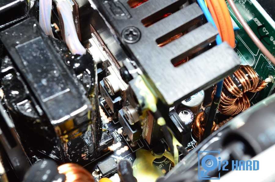 Посмотрим, как все выглядит изнутри. Элементы расположены относительно свободно, что позволяет воздушному потоку более эффективно их охлаждать. Пайка выполнена качественно, на всех необходимых местах присутствует дополнительная изоляция.