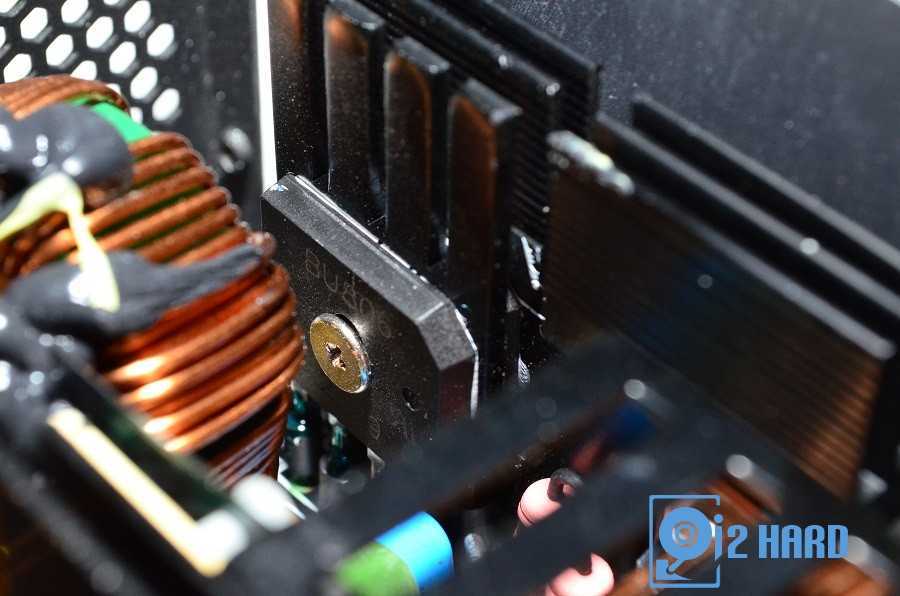 Транзисторы установлены через теплопроводящие изолирующие прокладки и термопасту.