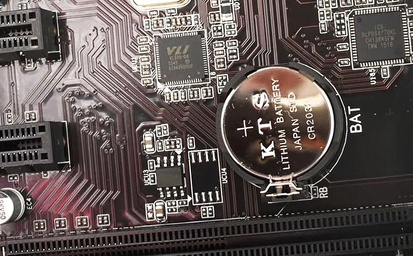 На материнской плате расположена стандартная Li-On батарея BIOS на 12V.