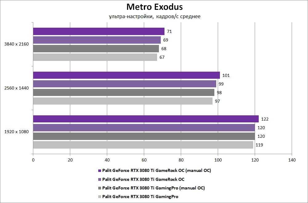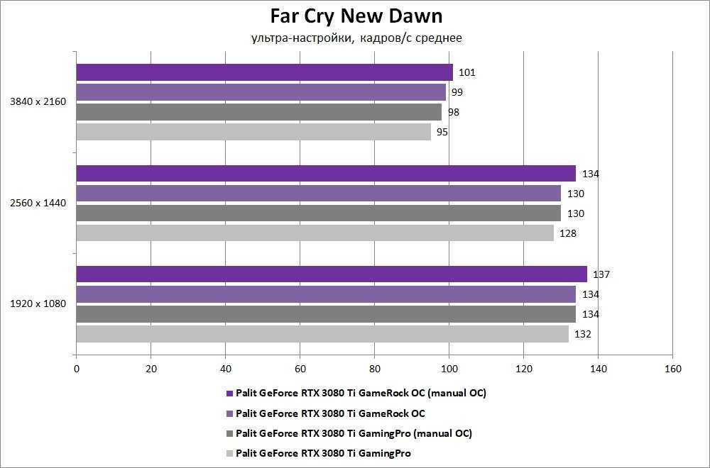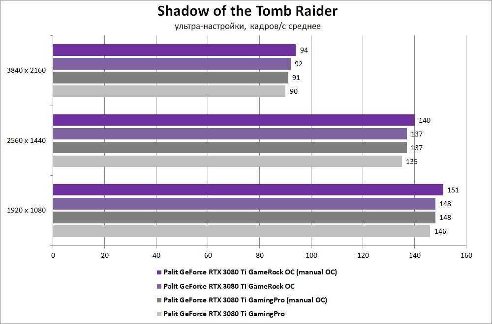 Во всех случаях видеокарта GeForce RTX 3080 Ti GameRock OC оказалась быстрее GeForce RTX 3080 Ti GamingPro за счет расширенных лимитов энергопотребления и более эффективной системы охлаждения. Но если говорить в целом, то оба графических адаптера продемонстрировали высокий уровень игровой производительности.