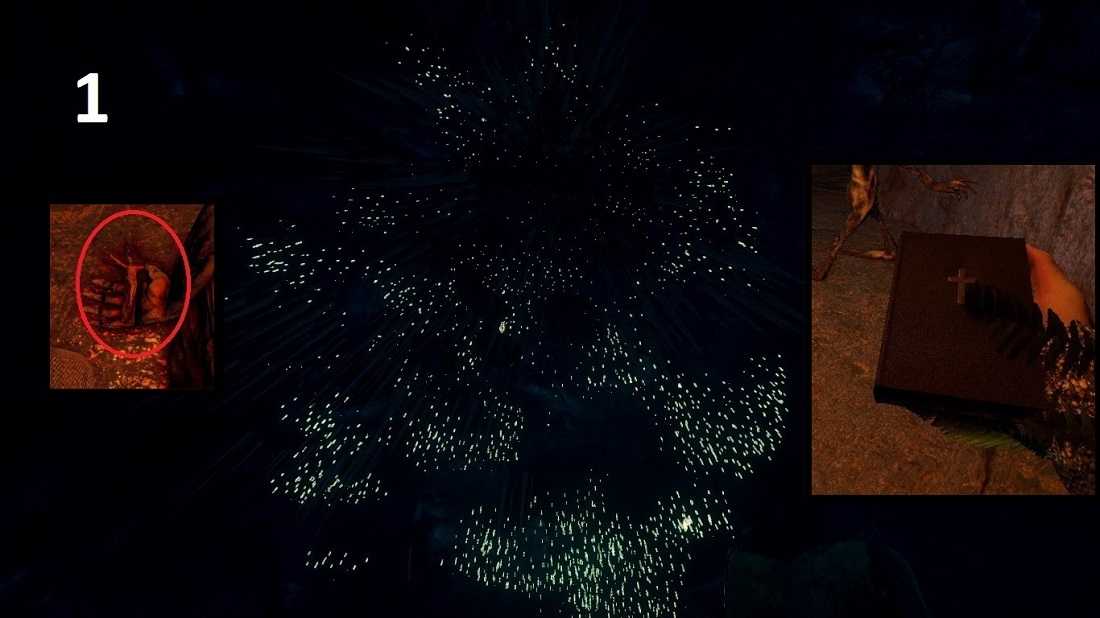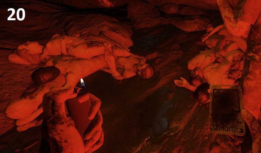 Эта пещера не похожа на все остальные. Тоннели явно искусственного происхождения. Много библий, два рисунка Тимми. В конце самое удивительное – дверь в железный бункер. Так можно найти несколько параллелей с сериалом «Остаться в живых» («The Lost»), где герои тоже потерпели крушение на самолете на необитаемом острове. На острове также был бункер, который открывался «счастливым кодом» одного из героев. Кто знает, быть может, когда территорию бункера разблокируют в игре, кодом к двери будут числа из предсказания фортуны – 96, 40, 99, 80, 46, 44