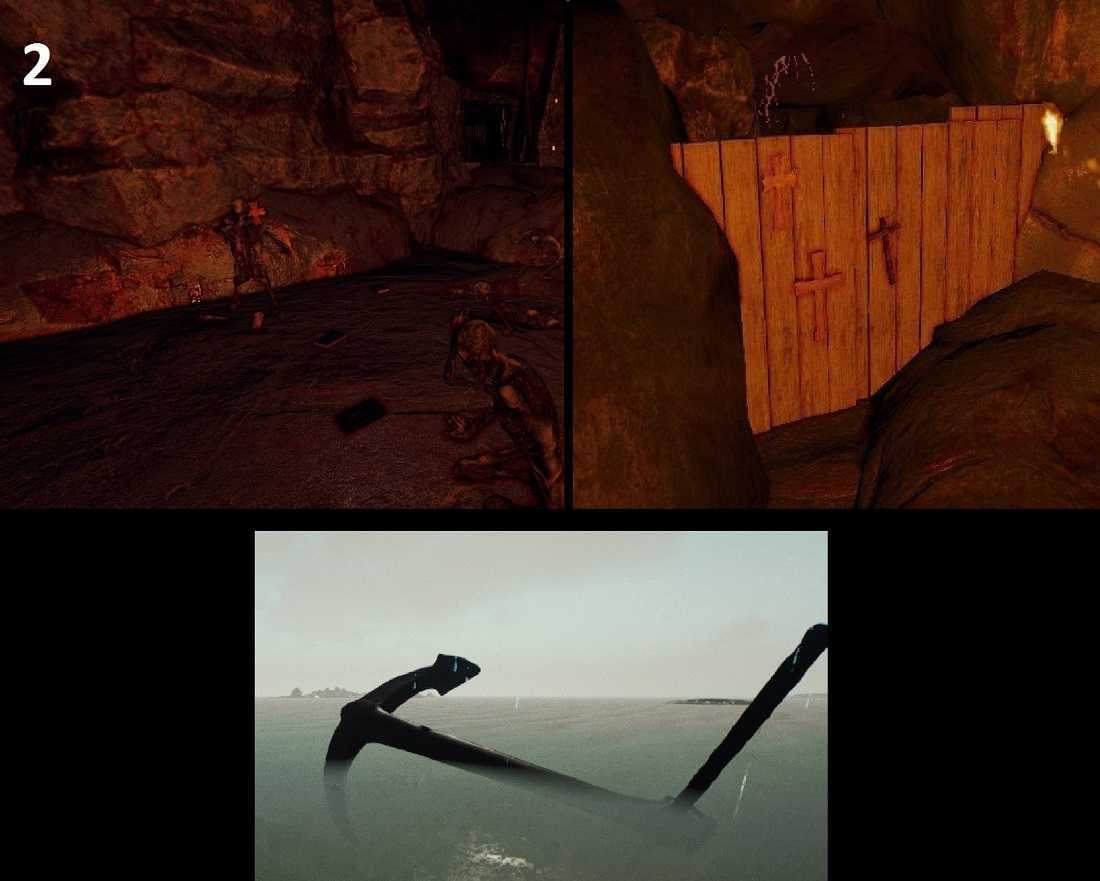 Впоследствии мы найдем группу католиков, умерших в одной из пещер (фото 2). Возможно, это были последние живые католики на острове, что погибли при очень странных обстоятельствах (Стоит только обратить на позы и расположение их останков), возможно и нет. Ведь нельзя исключать версию,что католики породнились с аборигенами и продолжили род. Возможно мы найдем в воде большой парусный корабль, на котором прибыли испанцы. На острове 100% был парусный корабль, иначе откуда такой якорь на берегу? Больше скажу, таких якорей 3, остальные два в воде на большой глубине. Якорь не похож на якорь современных кораблей (Фото 2) Также католики забаррикадировали тоннели в некоторых пещерах досками с крестами (Фото 2), наверняка, чтобы сдержать, «запереть» там нечистую силу, как они полагали, и предостеречь следующих возможных людей, прибывших на этот остров, от опасности.