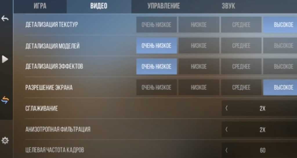 Сглаживание и анизотропную фильтрацию лучше выставить на уровне 2Х для снижения нагрузки на систему. Для более мощных смартфонов актуальной будет комбинация: сглаживание 4Х и отключенная анизотропная фильтрация. После этого делаем небольшую прогулку и смотрим на картинку. Если заметны полосочки при повороте камеры обзора или идет слишком быстрая смена картинки, нужно несколько снизить показатель целевой частоты кадров. Теперь можно переходить к наладке управления.
