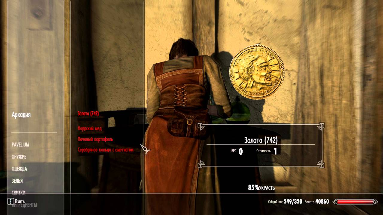 Третий вариант — обыграть всё это в сюжете. В TES V: Skyrim вы можете заниматься карманной кражей. Вероятность успеха зависит от разных параметров, а сам шанс успеха можно увидеть на экране.
