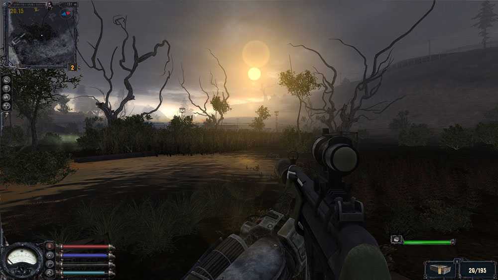 В левой части локации расположено болото, где начинается квест у сталкеров-нейтралов. Ребята движутся в сторону Янтаря – окажите им помощь в борьбе с мутантами, чтобы получить улучшенный костюм «Заря».