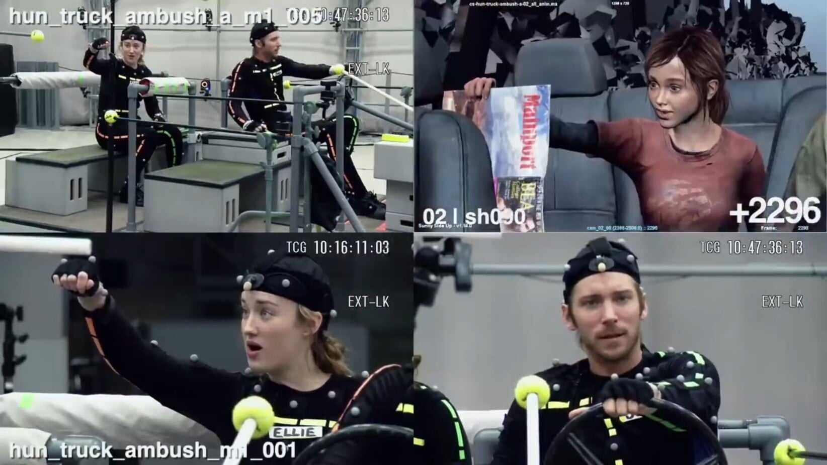Совместными усилиями команда переизобрела сцену в середине игры, которая никак не получалась. В ней Джоэл и Элли ссорятся, девочка впервые показывает эмоциональную уязвимость и делится травмой из прошлого. Трой говорит в интервью: «Все было отлично, но мы не могли добавить нужный слой искренности». Эшли: «Получалось неплохо, но что-то в сцене казалось неправильным. Мы отыграли реплики, вложили себя, но что-то не работало».