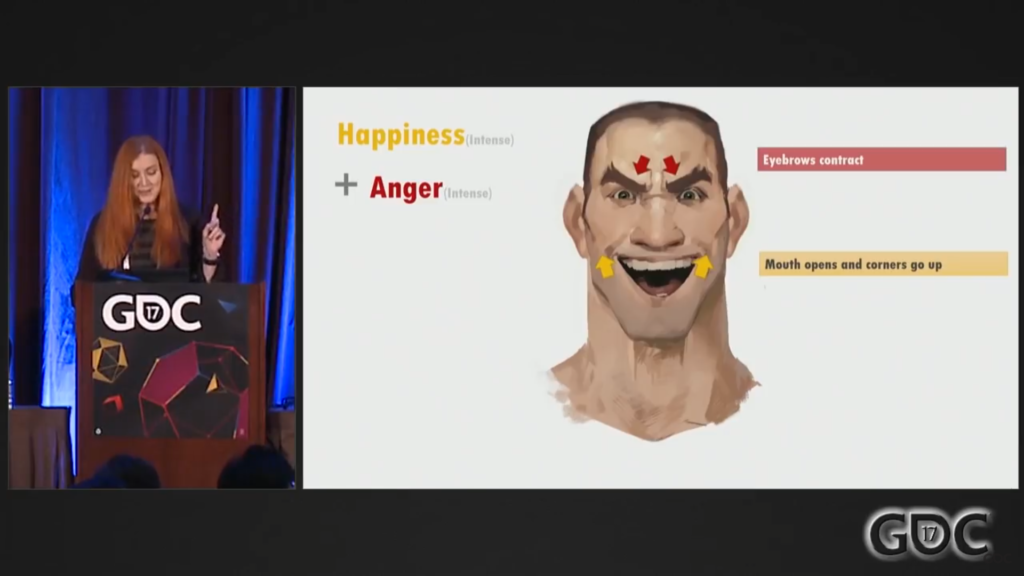 - К примеру, художнику нужно создать концепт счастливого персонажа. Здесь недостаточно просто изобразить улыбку, как предложили бы многие люди. Да, нужно развести уголки губ в стороны, но также — расширить ноздри, поднять нижние веки. Для большего эффекта — более читаемого счастья — можно поднять брови и распахнуть рот.