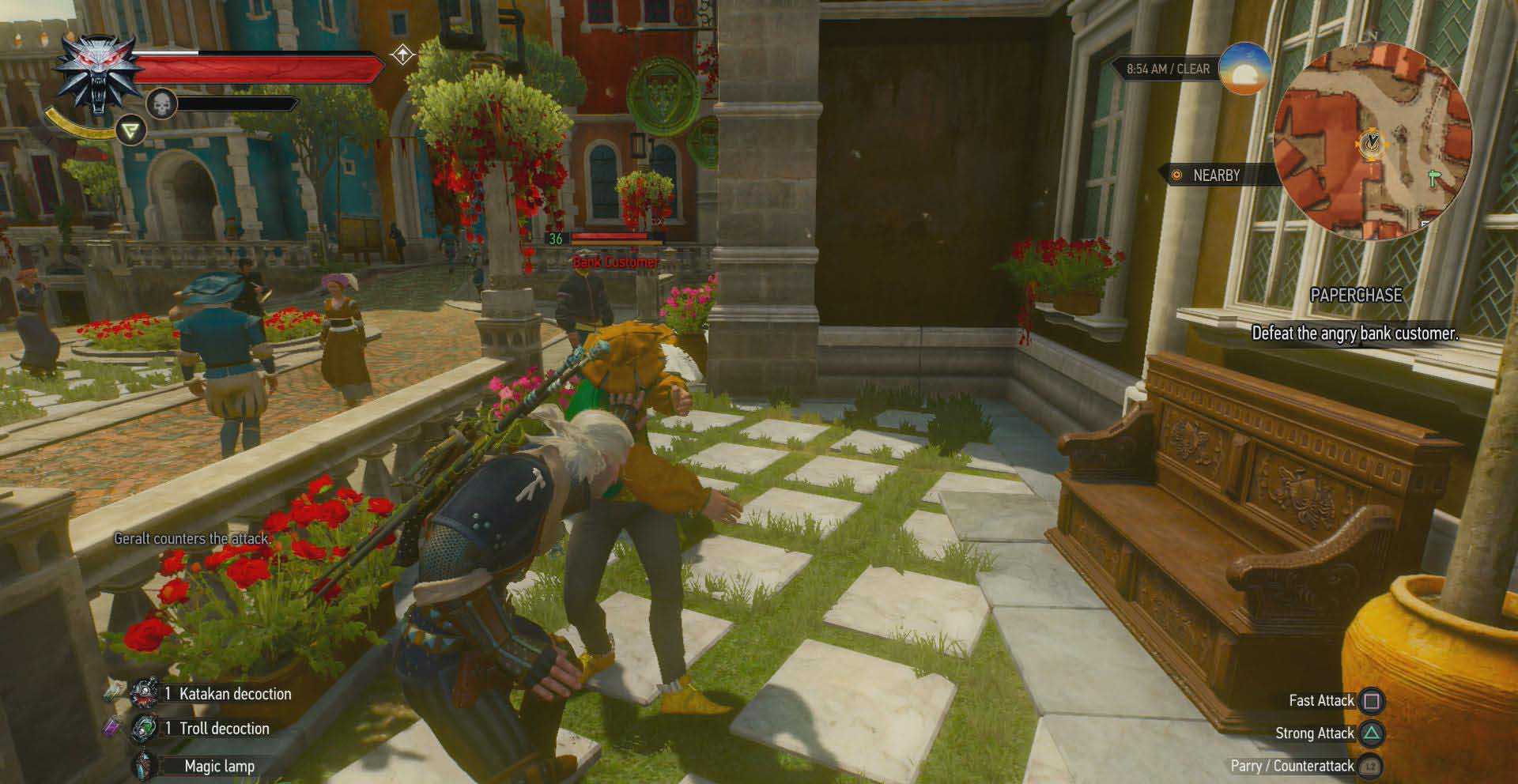 Этот квест немного более неясен, чем предыдущие квесты в Боклере, так как вы не можете взять его с доски объявлений. Вместо этого вам нужно будет поговорить с владельцем винодельни, который стоит к северо-западу от магазина Оружейника, который напомнит Геральту, что он помогал ему в прошлом, и он намерен отплатить за эту помощь. На самом деле он сделал депозит в банке Чианфанелли на ваше имя — все, что вам нужно, это пойти в банк и забрать деньги.