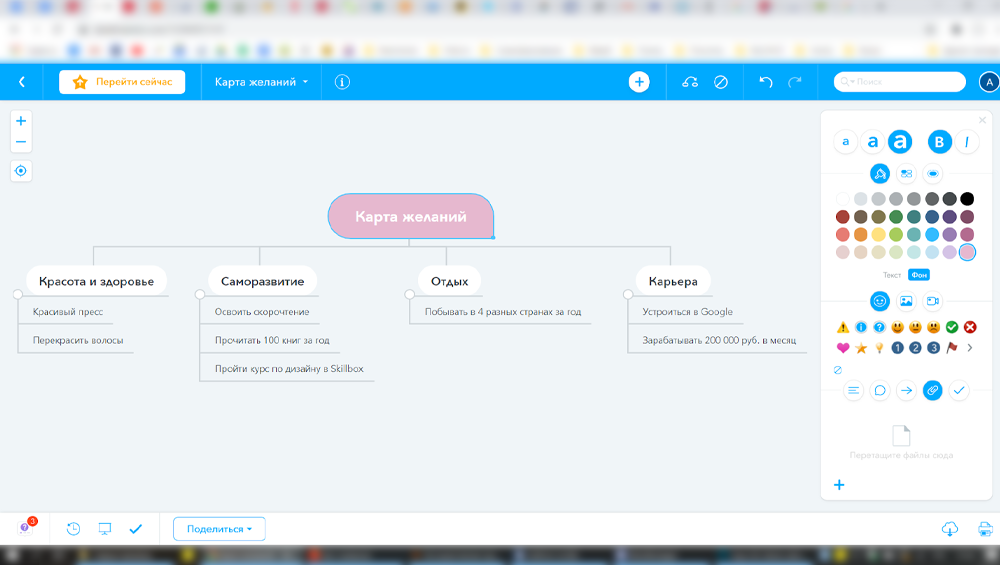 Сначала сервис предложит выбрать один из шаблонов (для ментальных карт лучше всего подойдёт раздел Maps). Но можно работать и самостоятельно, с чистого листа