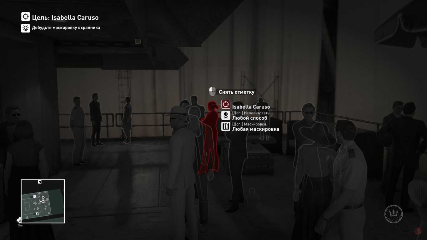 Оглушите Крюгера и переодевайтесь. Тело удобно убрать в ящик на алее поблизости 8 . С телефона Крюгера звоним Далии и общаемся, после чего отправляемся в гримерную, чтобы на нас нанесли грим. Выходим на подиум 21 , проходим и возвращаемся.