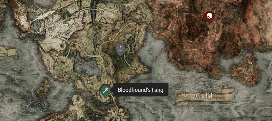 Клык ищейки можно обнаружить на западе от Калида в локации “Южный берег озера”, где вам нужно найти “Узилище одинокой ищейки”, которое выглядит как небольшое каменное углубление в земле. Чтобы получить оружие, вы должны сразиться с местным боссом — он совсем несложный.