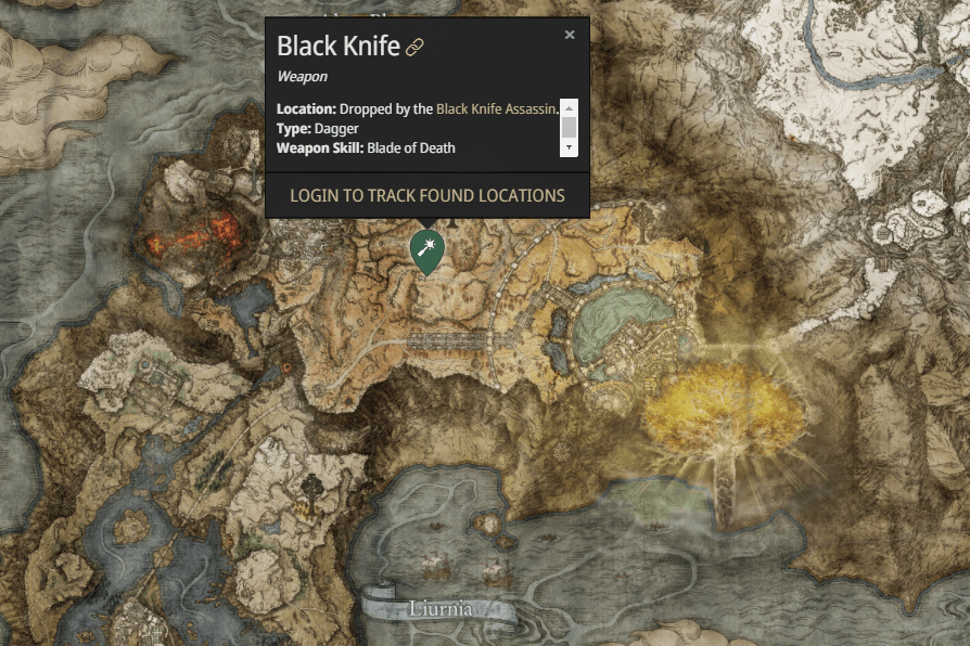 Черный нож находится неподалеку от бастиона, что на севере Лиурнии. Для получения кинжала нужно найти храм со статуей на крыше, где нашего странника будет поджидать ассасин, который станет проблемой для неопытных игроков.