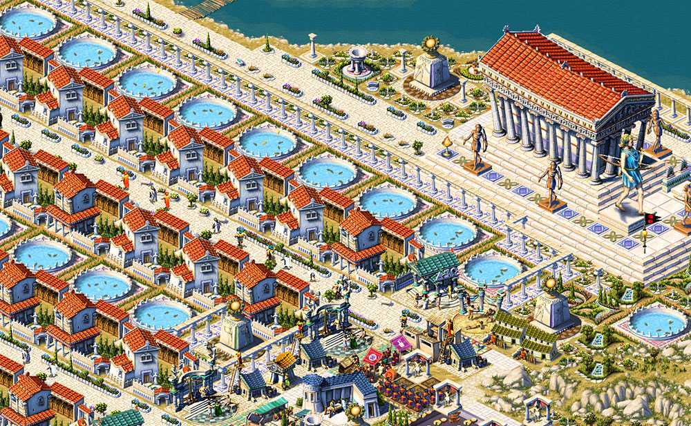 Внимательно прокладывайте дороги от складов до рынков, иначе народ не оценит задержек продовольствия. А вот от драматической школы к театру нужно построить максимально длинный и извилистый путь – так артисты порадуют всех жителей по пути. От зданий и их окружений зависит стоимость, престижность и возможность улучшения. Людям не хочется жить неподалеку от грязного производства или по соседству с шумным театром. С ресурсами в Зевсе все проще. Несмотря на семь различных видов продовольствия, люди готовы питаться одним луком, главное, чтобы его хватило. Но щедрый мэр может добывать другие виды пищи – рыбу, морских ежей, пшеницу, морковь и даже сыр.