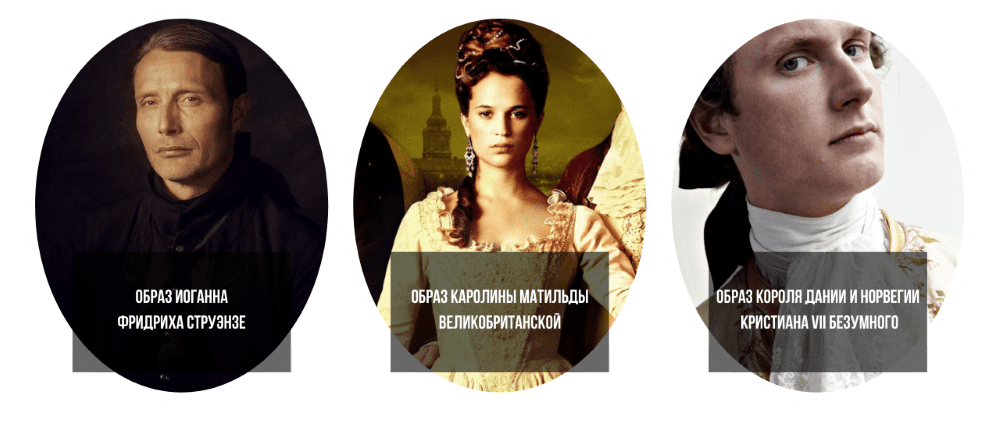 Фильм основан на романе Бодиль Свенсон-Лет «Принцесса крови». Однако активная деятельность Струэнзе и Каролины-Матильды, по фильму, становится возможной лишь при одобрении её третьим главным героем ленты – самим королем Кристианом VII (Микель Фельсгор). Актёры играют великолепно, но сам «тройничок» королева-Струэнзе-король, показанный в фильме, представляется крайне сомнительным.