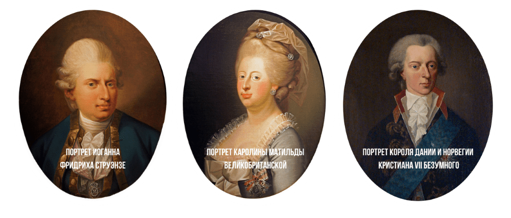 Каролине-Матильде, посвящены неплохие фильмы 1935 и 1957 года, где Струэнзе показан более объективно. Американский фильм носит характерное название «Диктатор», а во французском фильме «Правитель без короны» её роль исполняет… Татьяна Полякова, более известная как актриса Одиль Версуа и будущая графиня Поццо ди Борго, сестра Марины Влади.
