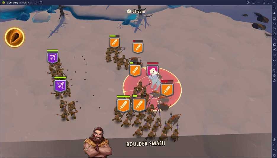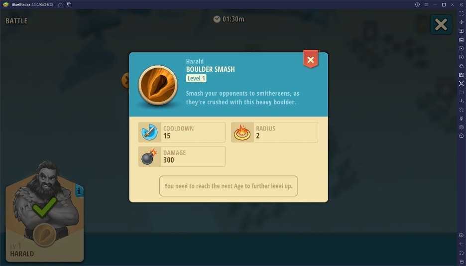 Среди навыков вы найдете различные заклинания и усиливающие умения. У всех навыков есть время перезарядки. В начале игры вашим командиром будет Харальд, у которого есть специальный навык. Он позволяет атаковать противника большим камнем каждые 15 секунд и наносит тонны урона всем врагам поблизости. Иногда этот навык помогает игрокам одержать победы и мы советуем его использовать каждый раз, когда он становится доступным.