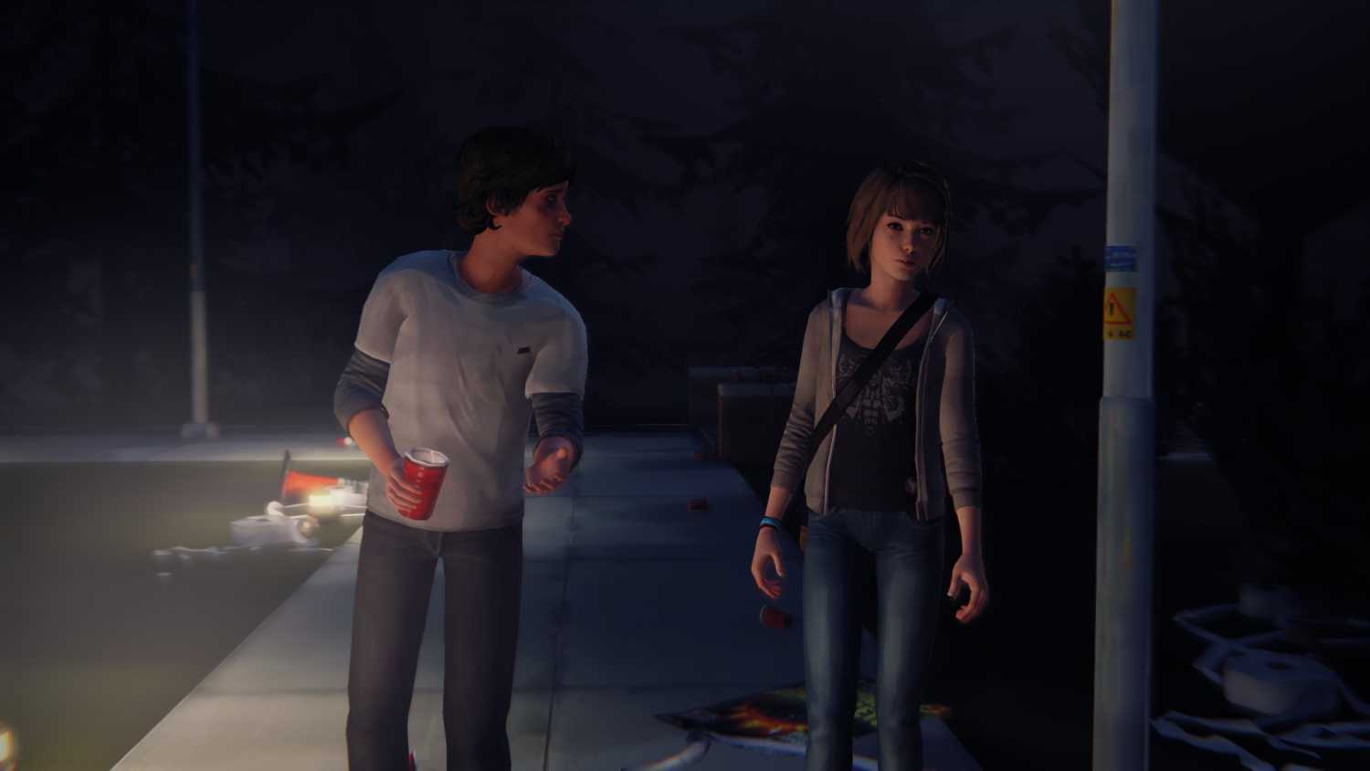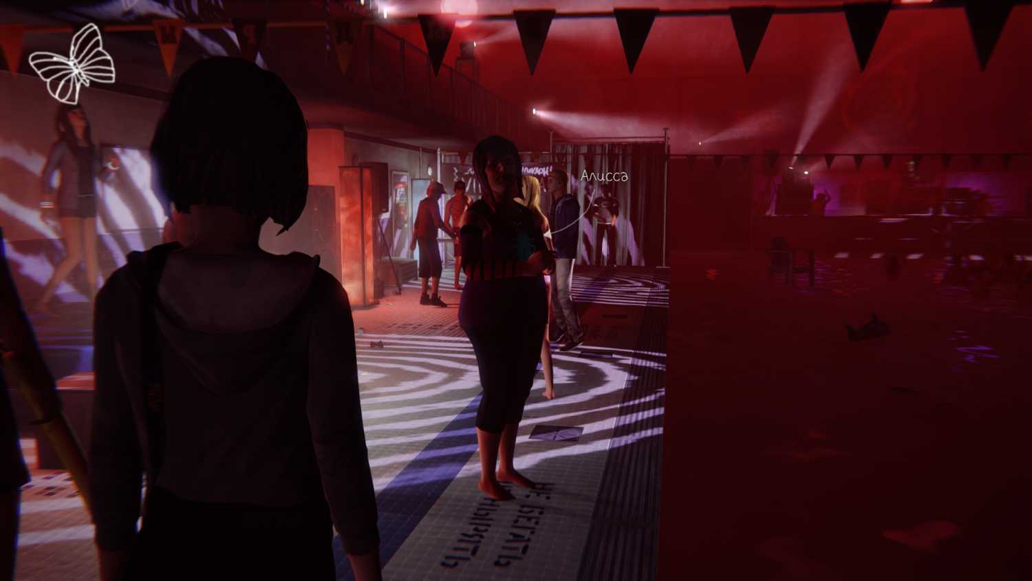 Прибыв на место, Хлоя, полная решимости, направляется прямиком в бассейн академии, где в самом разгаре бушует вечеринка «Конец света». По пути мы встретим пьяного Уоррена, который поблагодарит нас за то, что мы его остановили во время избиения Нейтана и не позволили совершить что-то страшное. Затем он попросит сделать совместное селфи и отпустит нас.