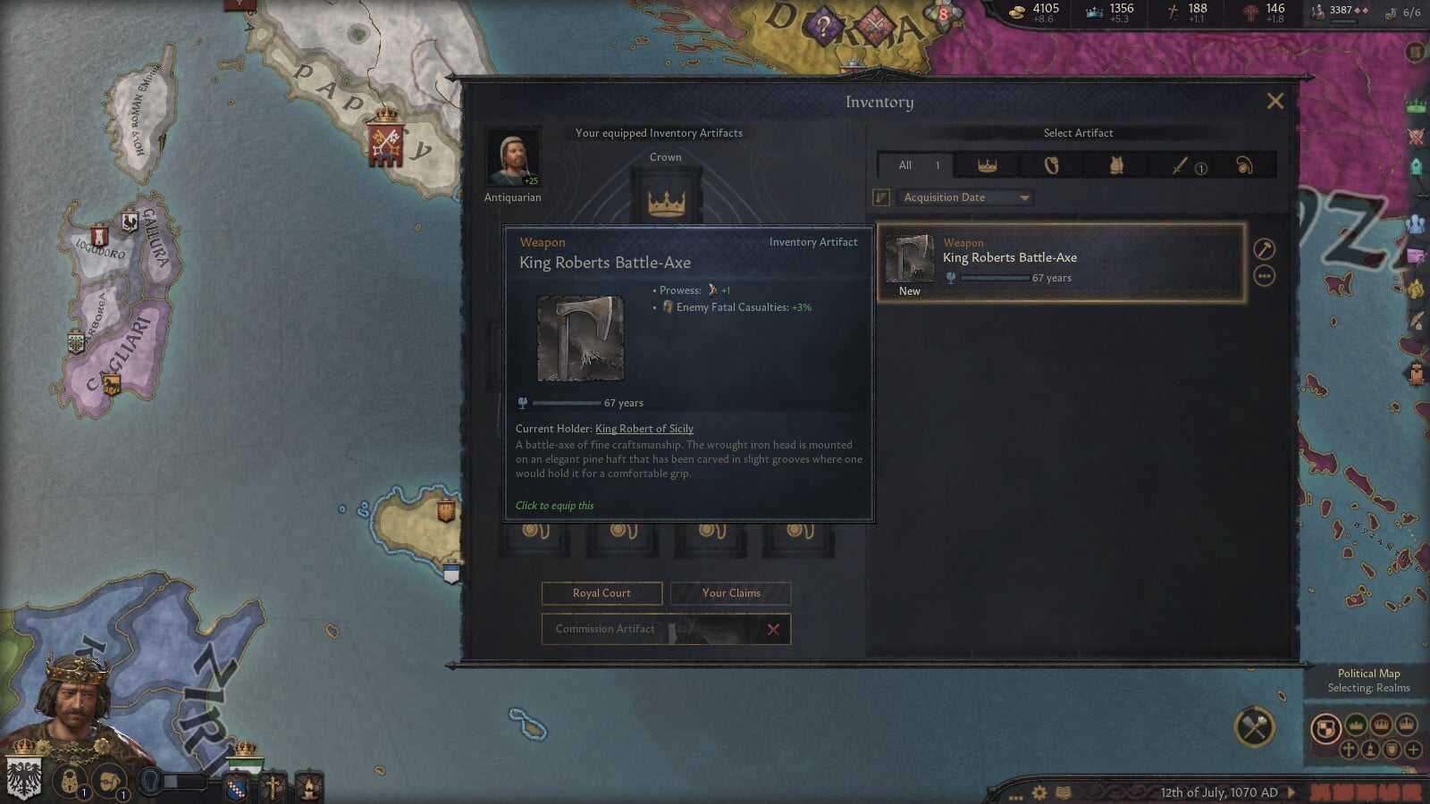 Если вы начали не как итальянский граф, в какой-то момент вы должны сменить свою культуру на итальянскую. Для этого выберите графство с итальянской культурой и перенесите в него столицу своего королевства. После этого в меню решений вы найдете опцию «Обратить в местную культуру» (это будет стоить 300 престижа).