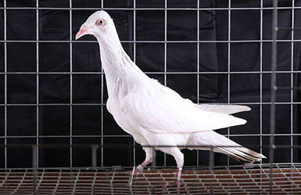 Белоголовый эльбинский является ярким представителем массивных широкогрудых птиц голубеобразного отряда.